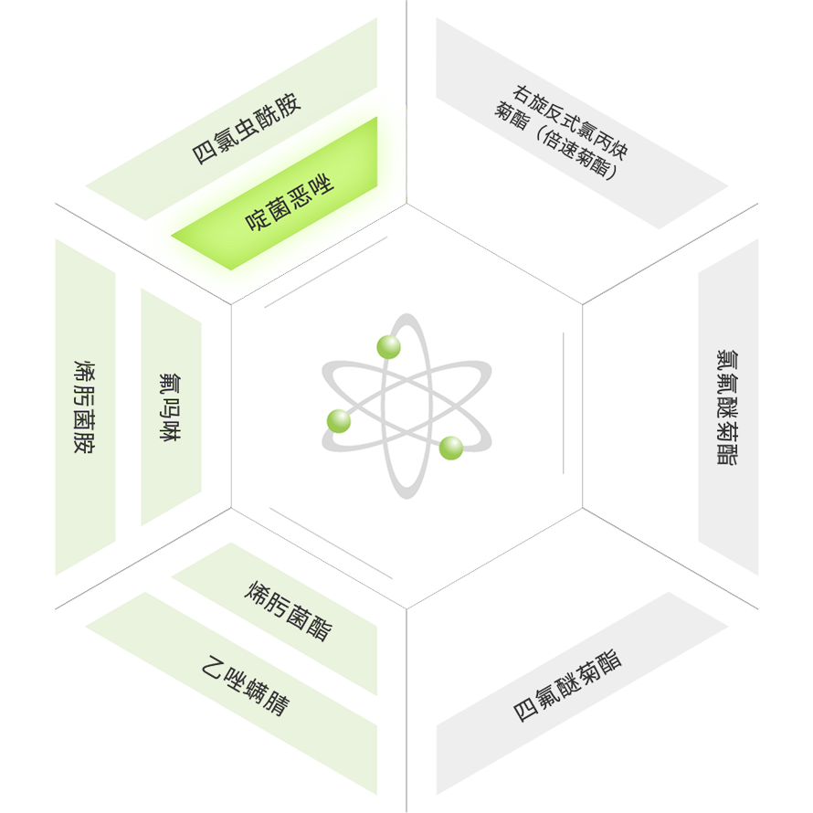 公司主要从事农化产品研发、生产和销售,现已形成拟除虫菊酯为核心、农药为主导、精细化学品为补充的多元化产品格局。自主开发并已经产业化的农用和卫生用原药品种达70个,产业化制剂品种达96个,在全国农化企业中名列前茅,研发创新水平国内领先、国际先进,品种覆盖杀虫剂、除草剂、杀菌剂和植物生长调节剂等四大类。氯氟醚菊酯、右旋反式氯丙炔菊酯、四氟醚菊酯、乙唑螨腈、四氯虫酰胺、氟吗啉、啶菌恶唑、烯肟菌酯、烯肟菌胺、丁香菌酯、唑菌酯、氯啶菌酯等12个品种为我企业研发的具有我国完全自主知识产权的创制新农药,为保驾农业增产和农民增收贡献了积极力量,让现代农业惠及更多农民和消费者。