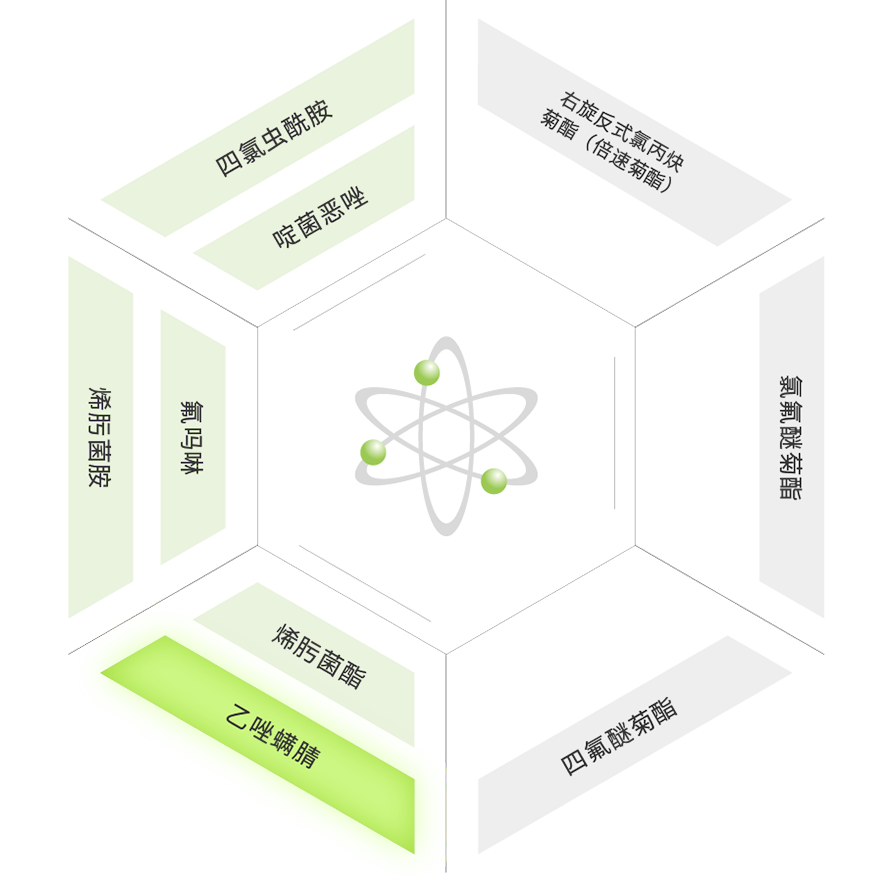 是全新化合物,作用机理独特,可防止农业害螨。具有杀螨速度快、持效期长、防效突出等优点,与其他杀螨剂无交互抗性。