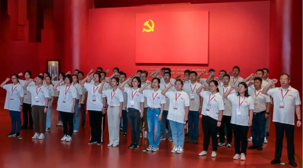 “我志愿加入中国共产党,拥护党的纲领,遵守党的章程……”在淮海战役纪念馆,公司工会主席、党群工作部主任张庆平同志带领大家面向鲜艳的党旗,重温入党誓词,叩问入党初心。
