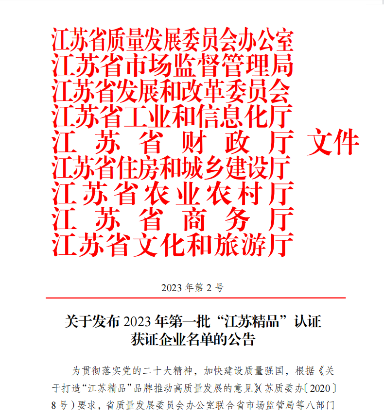 10月27日,江苏质量大会举行会上发布了2023年第一批“江苏精品”认证获证企业名单,我司优嘉植保榜上有名!