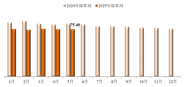 5月,除草剂价格指数为75.40,环比上涨0.31%,同比下跌10.44%。监测在内的47种除草剂产品中,加权平均成交价格环比上涨的19种,环比下跌的27种;加权平均成交价格同比上涨的9种,同比下跌的34种。